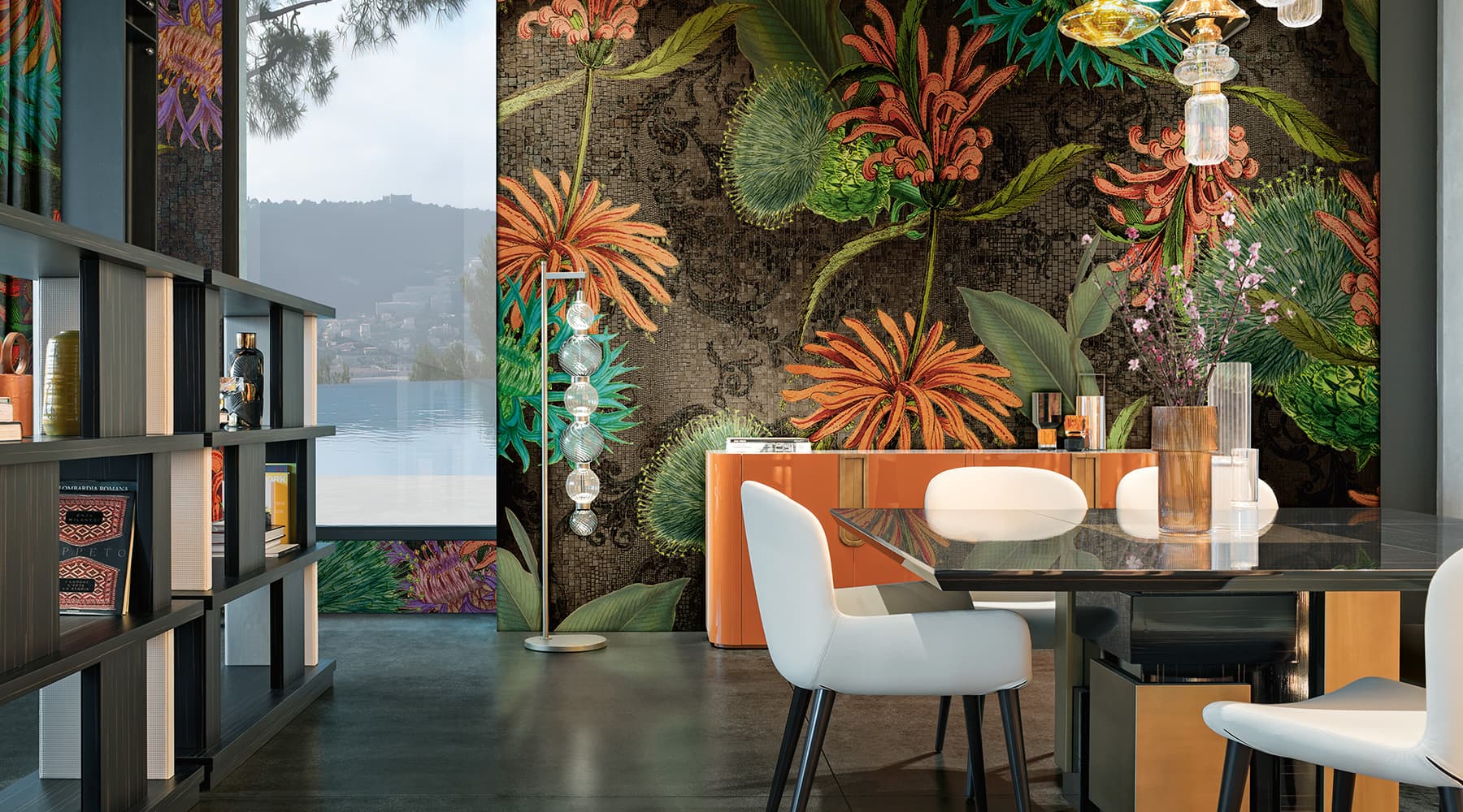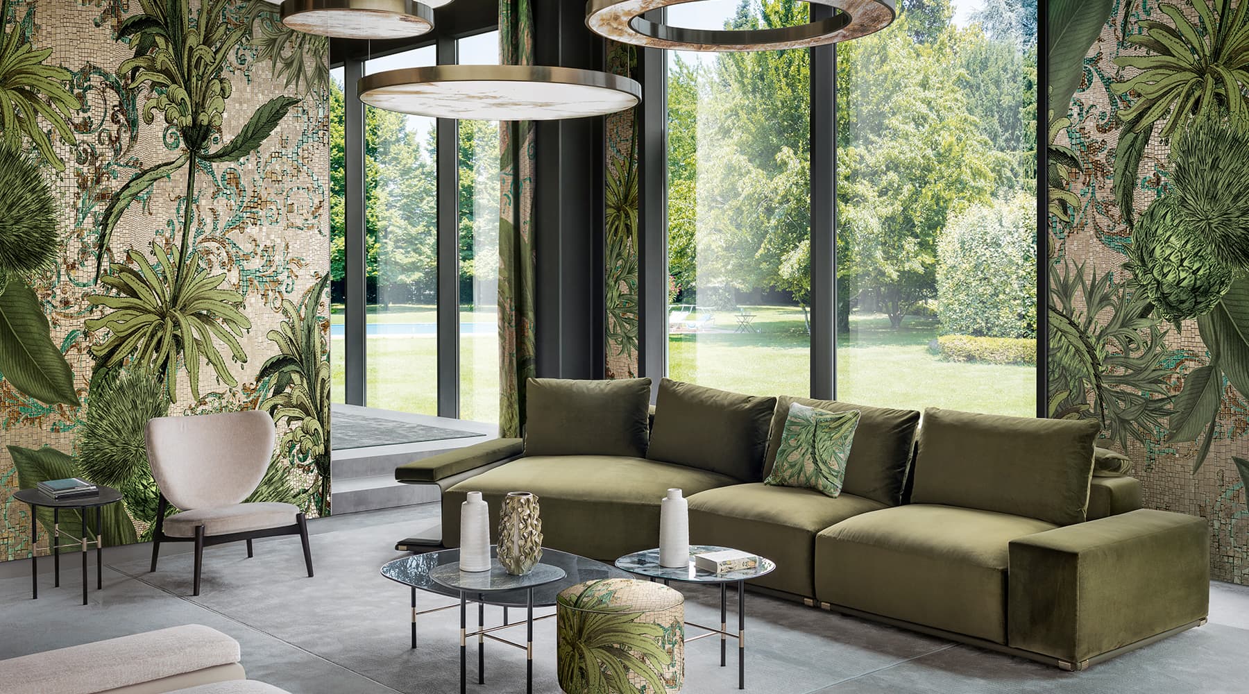 Carte da parati, tessuti, tappeti e Vetrite diventano superfici d’autore, capaci di evocare l’anima del musivo con nuovi linguaggi visivi. Un progetto che unisce estetica, artigianato e innovazione, per dare forma a spazi fluidi, raffinati, contemporanei.