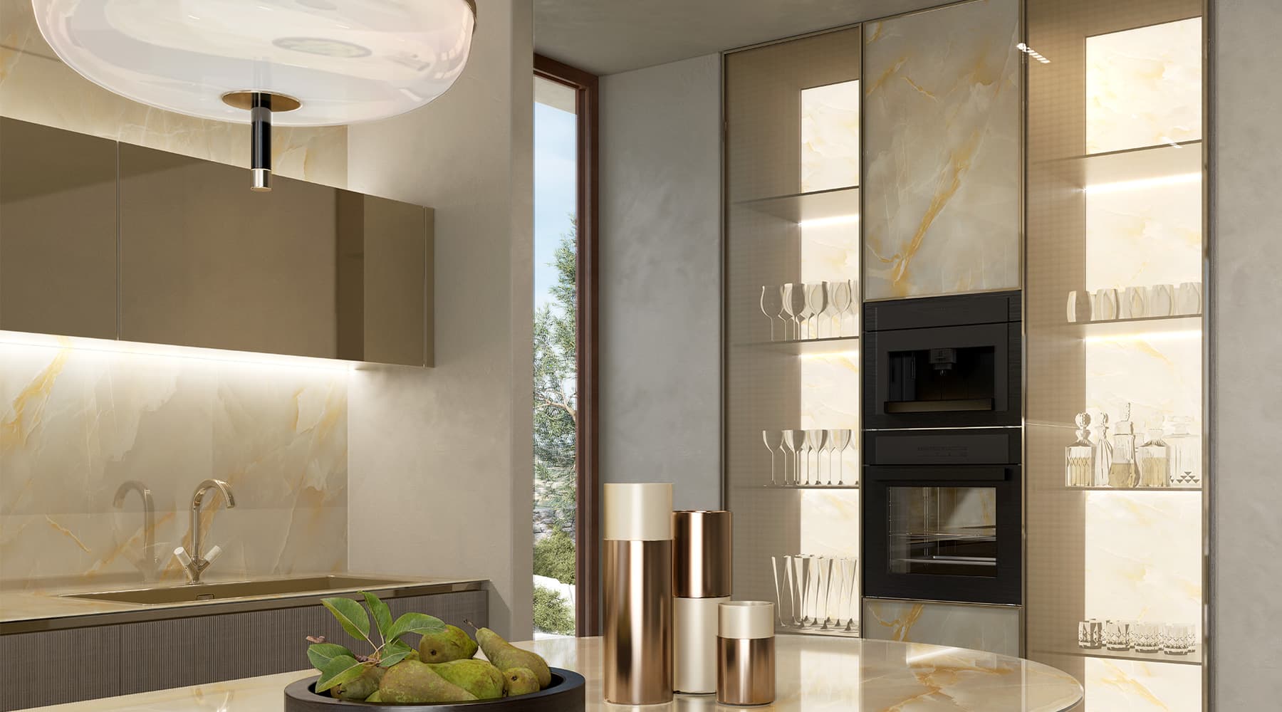 Funzionalità a scomparsa e sistemi integrati definiscono il carattere delle cucine SICIS. San Marco adotta aperture ripiegabili in Vetrite e dettagli metallici che esaltano il design, mentre Rialto si distingue per le sue ante a chiusura flessibile che trasformano l’ambiente con eleganza. Ogni elemento, dalle prese integrate ai moduli nascosti, è studiato per scomparire e riapparire secondo necessità, garantendo un equilibrio perfetto tra estetica e praticità.