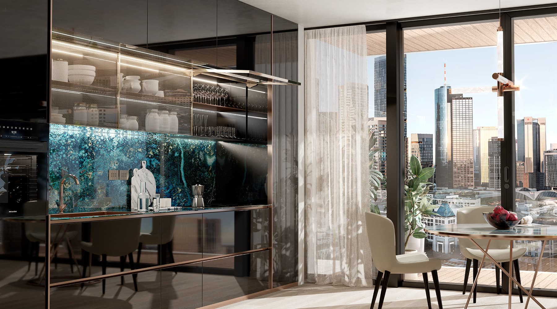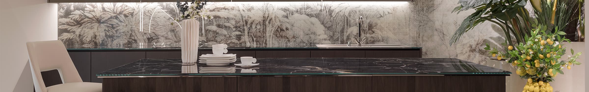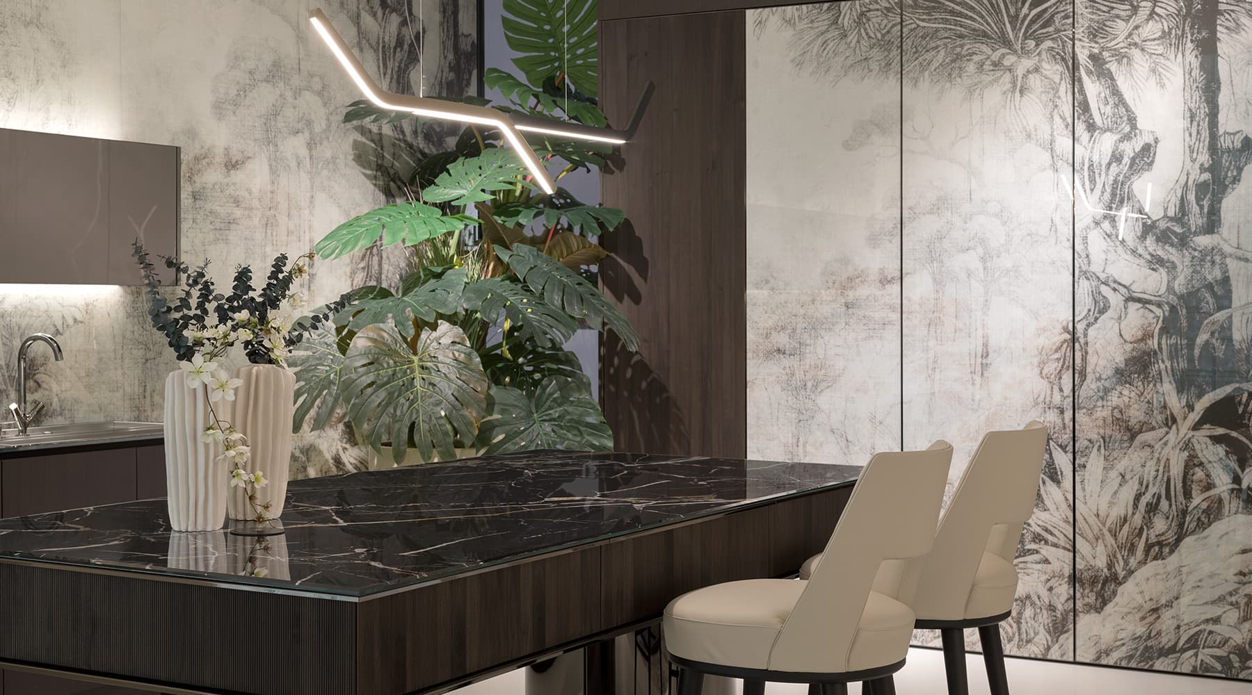 Le nostre cucine ampliano le funzioni e moltiplicano le possibilità d’uso, con isole centrali che diventano protagoniste assolute. In San Marco, la geometria decisa e i contrasti materici danno vita a un impatto scenografico, mentre in Rialto le forme morbide e sinuose sono pensate per la convivialità. Tavoli a sbalzo rotanti, top retroilluminabili in Vetrite e soluzioni sospese trasformano la cucina in un ambiente vivo, elegante e sorprendente. Due identità progettuali distinte, nate da un’unica visione: offrire uno spazio dallo stile impeccabile, funzionale in ogni dettaglio e pensato per adattarsi a qualunque esigenza.