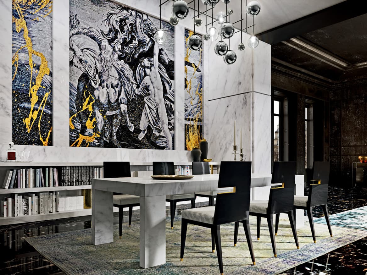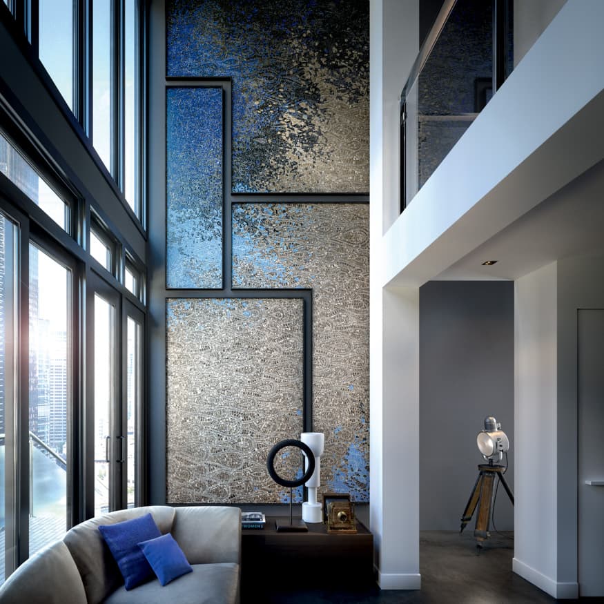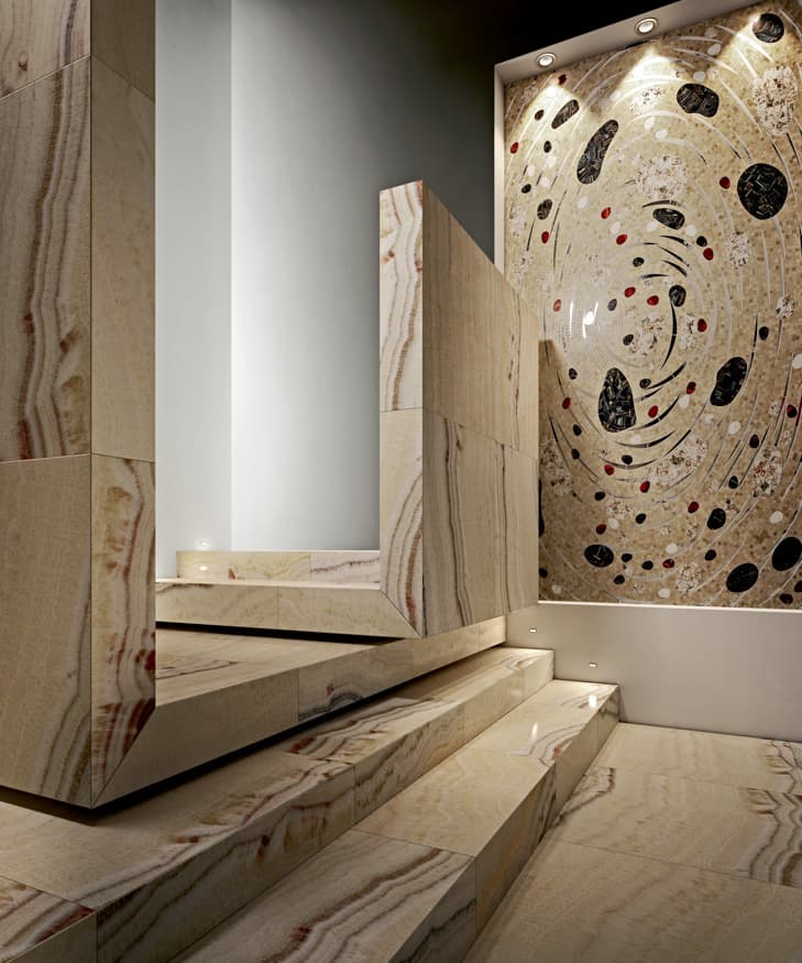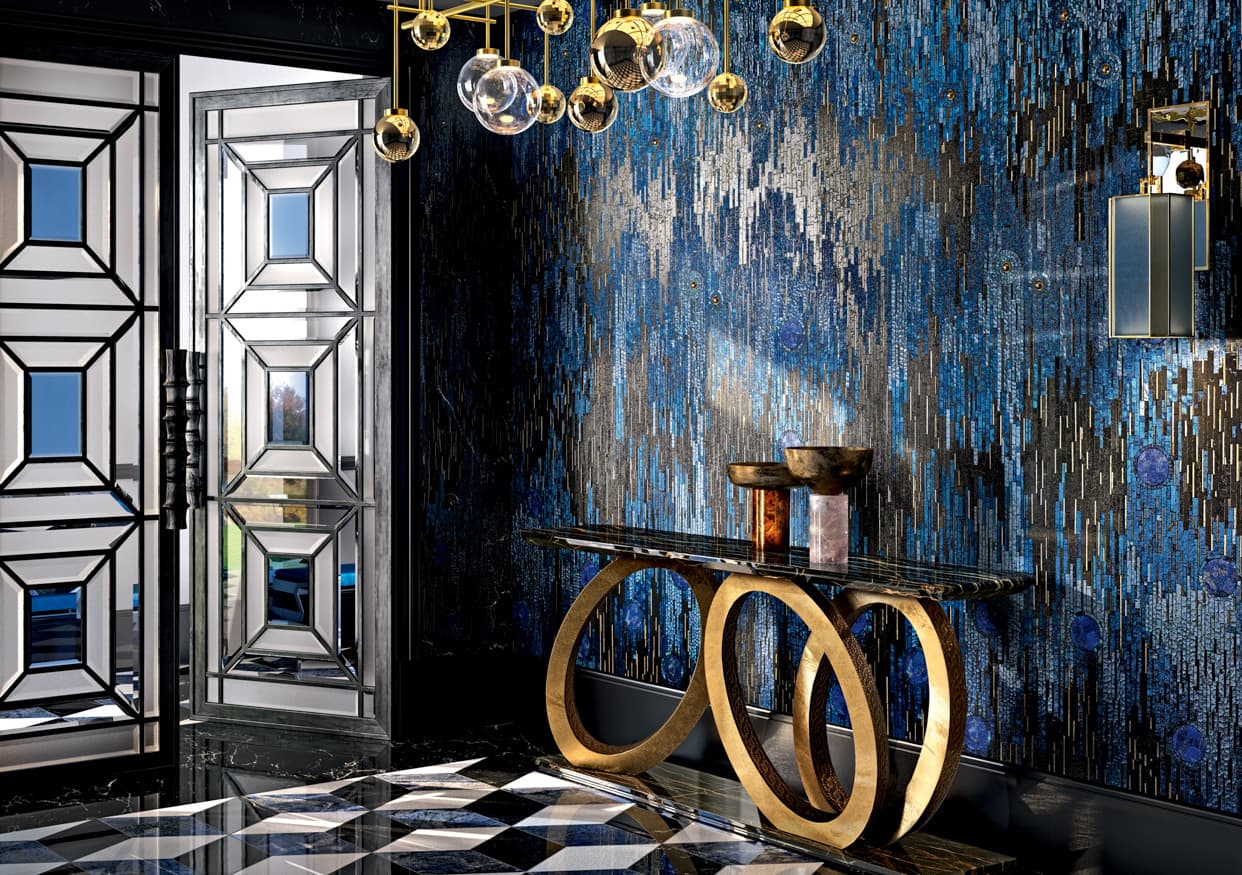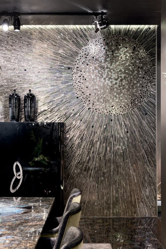 Pareti che diventano opere d’arte, crescono, si ampliano e arricchiscono lo spazio, come scenografie di un teatro. Il movimento prende vita dai materiali che si sovrappongono e creano forma e profondità con uno stile unico. La magia sensoriale e la poetica tridimensionale decorano l’ambiente, rendendolo un luogo sospeso nel tempo. Opere di stile e maestria, per riscopre le infinite possibilità espressive del mosaico artistico.
