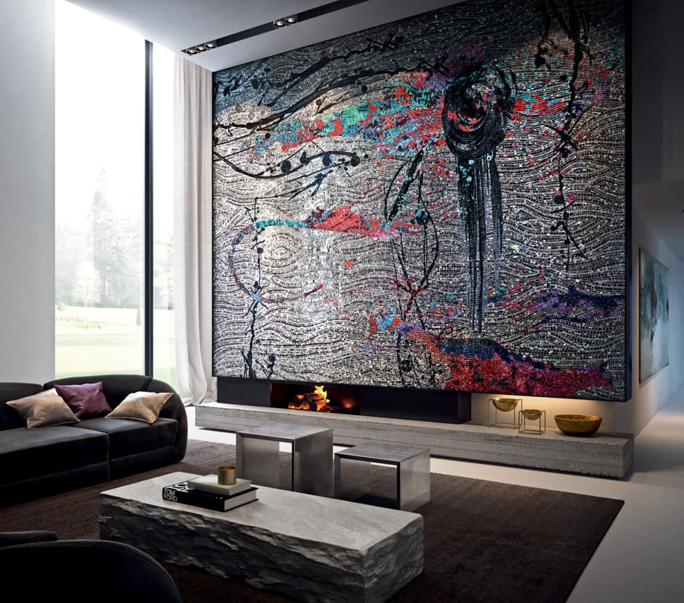 Forme fluenti, in continua evoluzione, mutazioni della materia plasmate da mani sapienti di artisti dell’arte musiva, vista in modo contemporaneo. Lavorazioni elaborate per opere esclusive che vestono gli ambienti di stile e infinita eleganza.