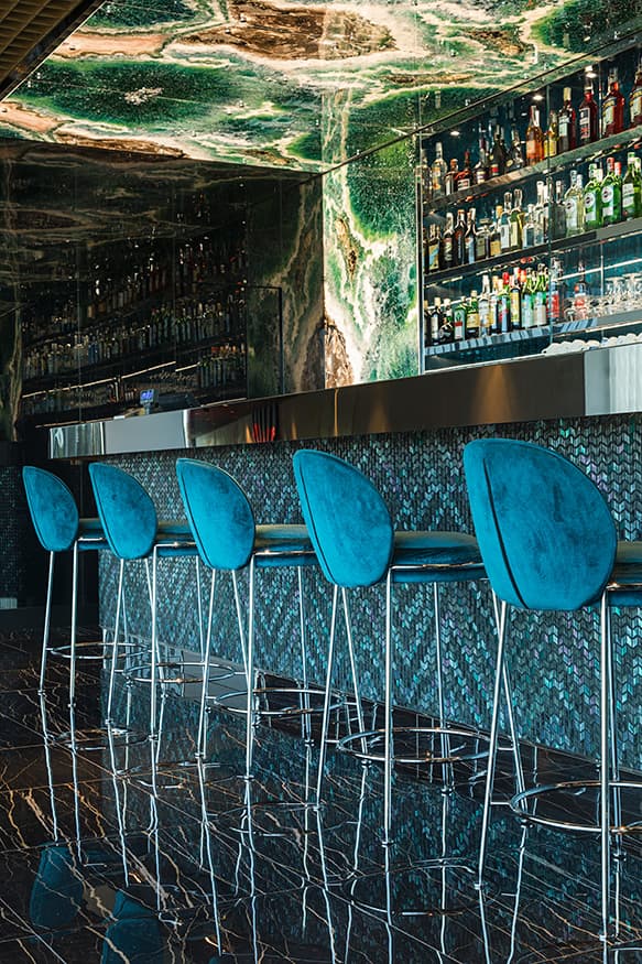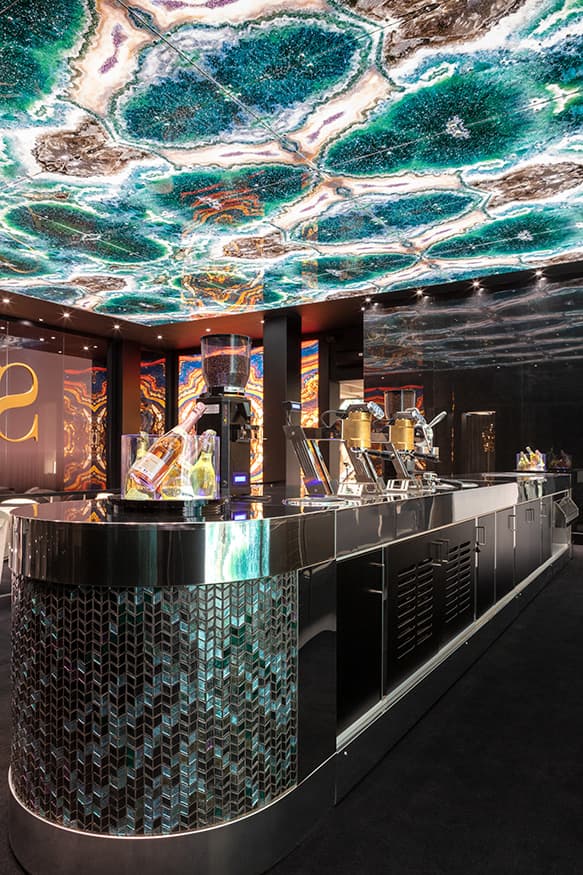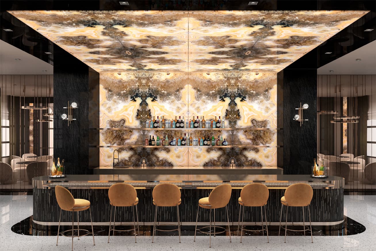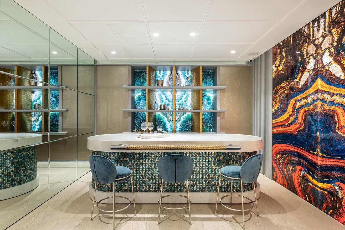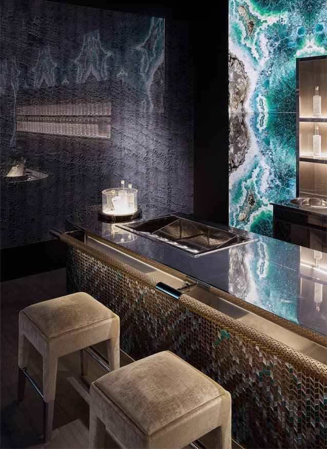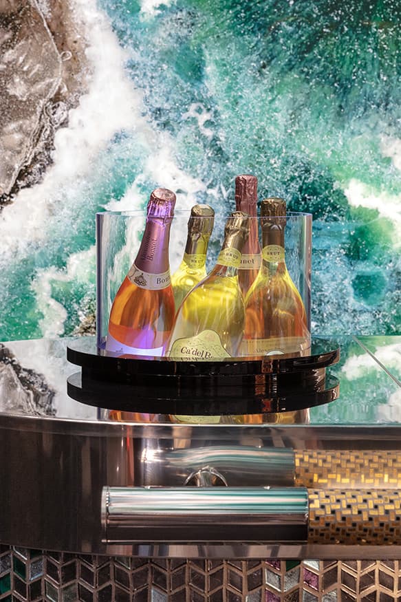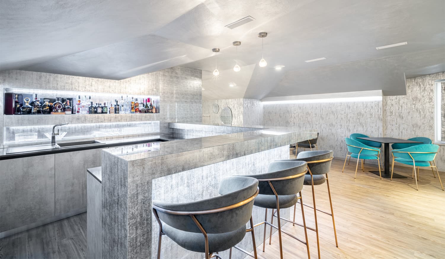 Le soluzioni proposte realizzabili su misura, in base alle necessità sono modulabili, sia per quanto riguarda gli accessori del banco bar, che nei rivestimenti, in mosaico o Vetrite.