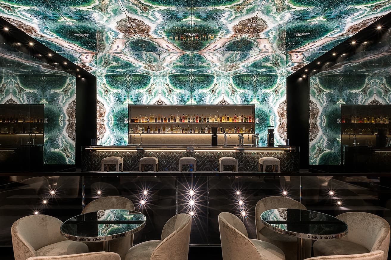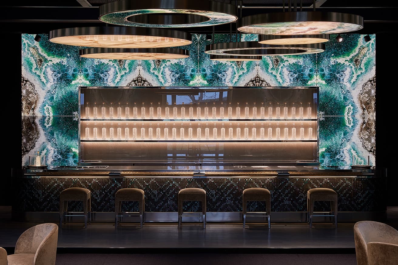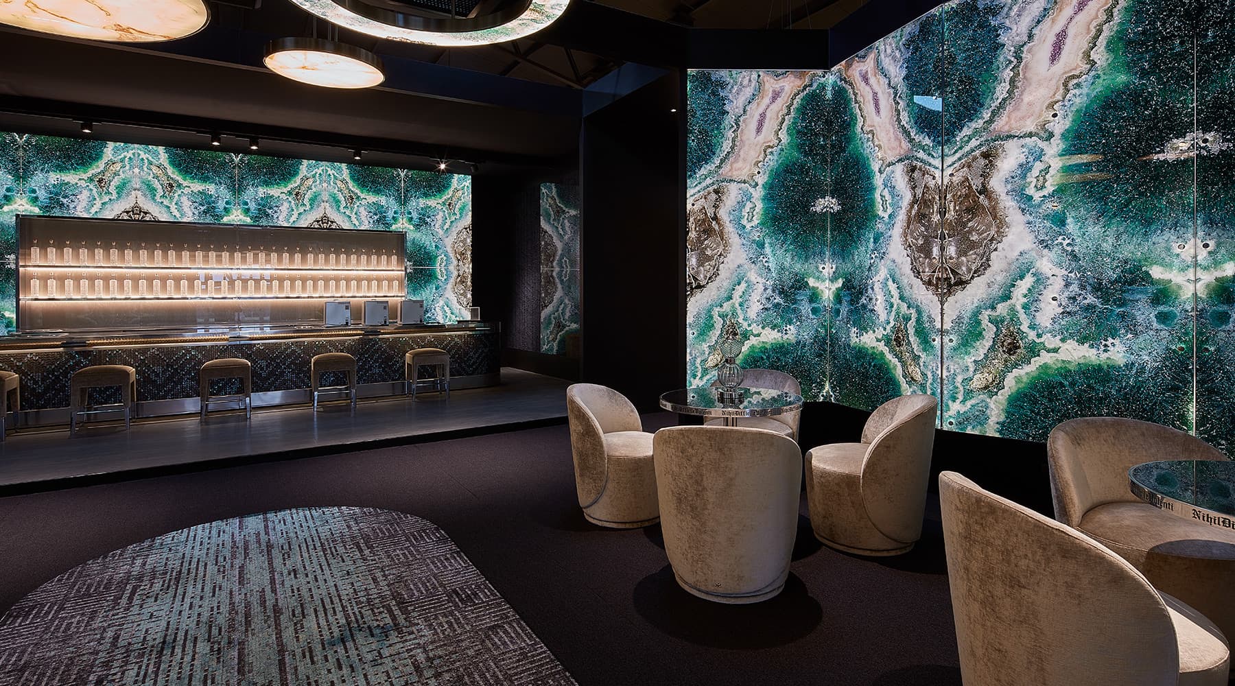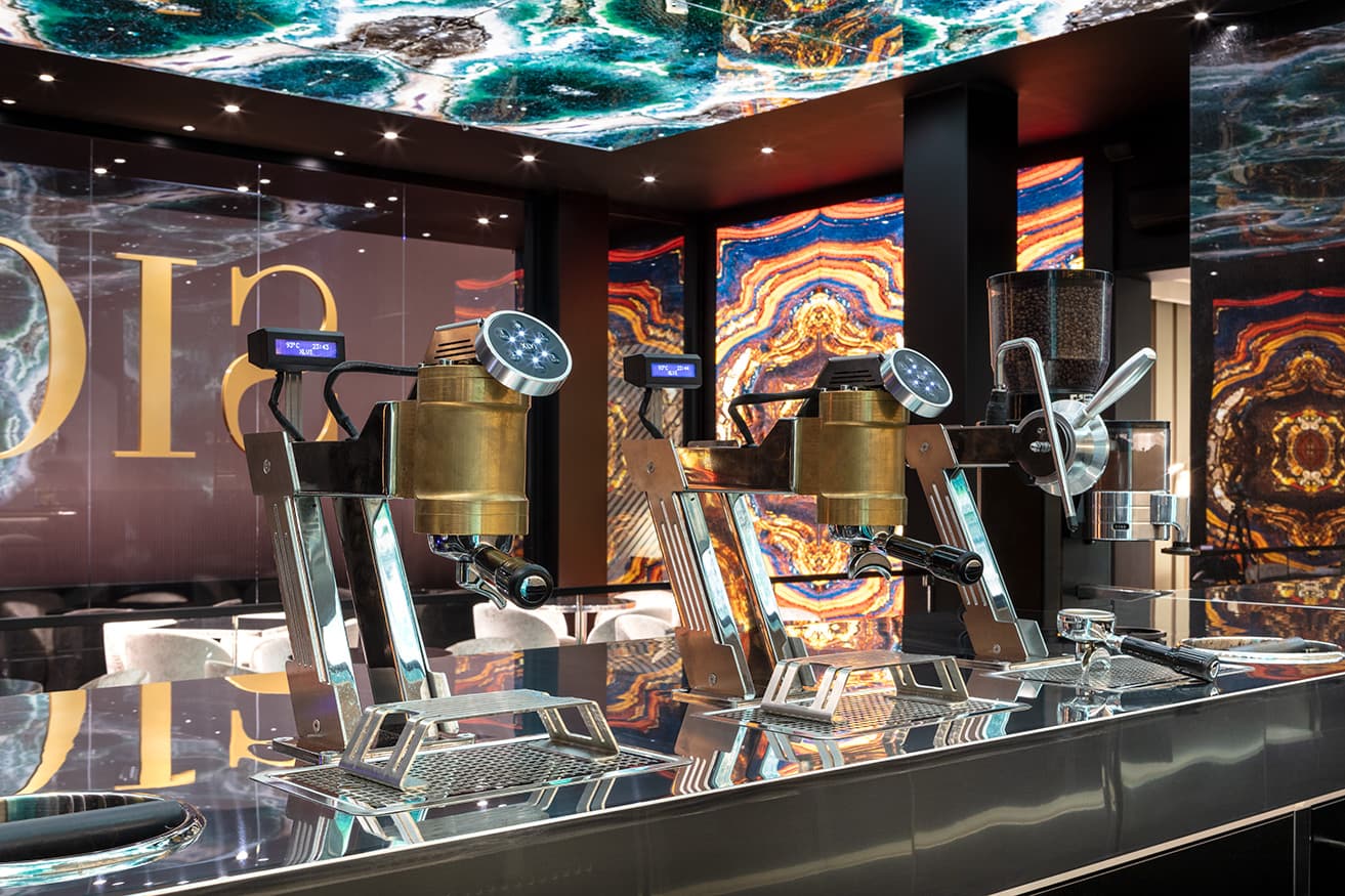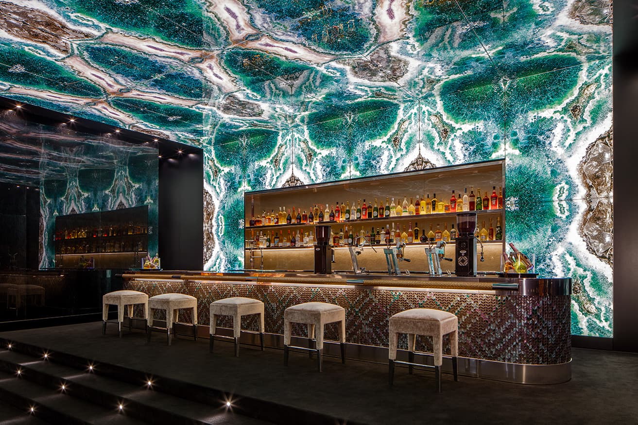 Le soluzioni proposte realizzabili su misura, in base alle necessità sono modulabili, sia per quanto riguarda gli accessori del banco bar, che nei rivestimenti, in mosaico o Vetrite.