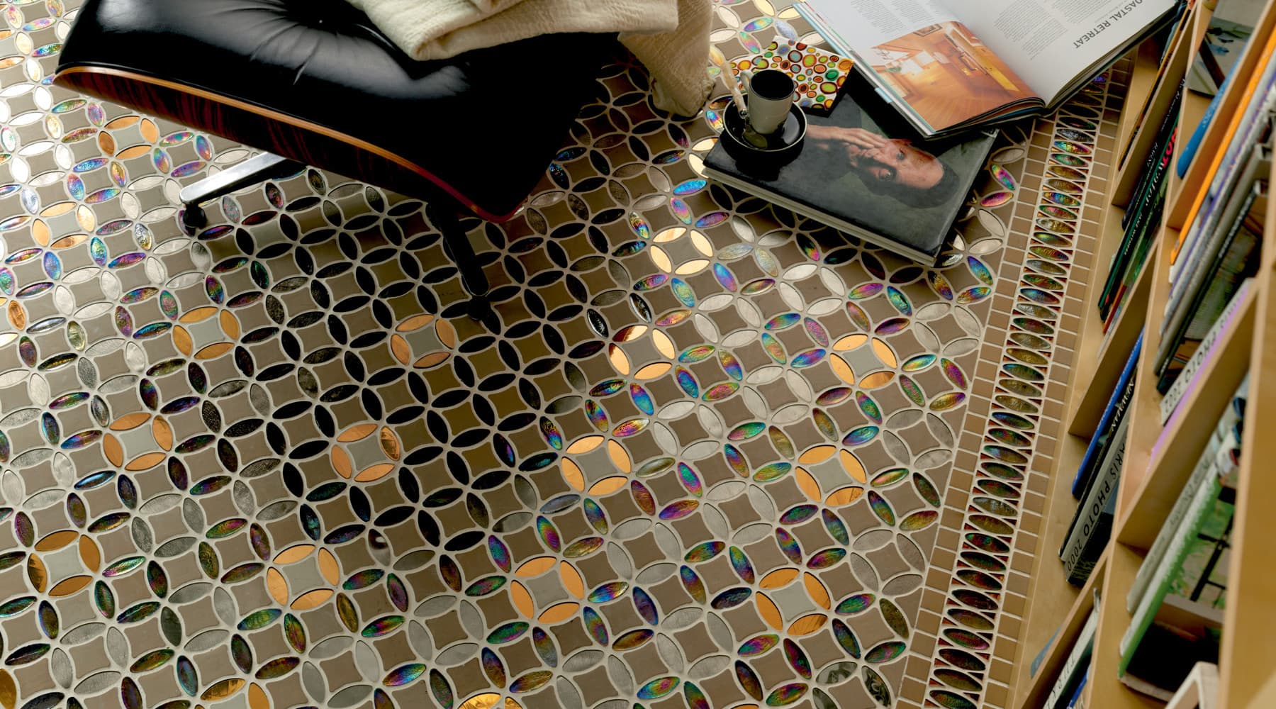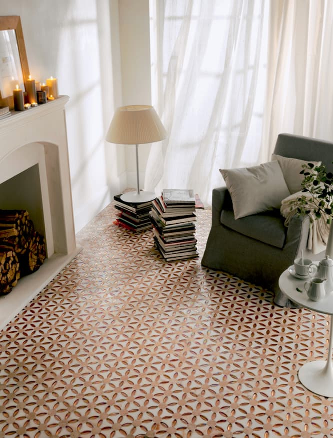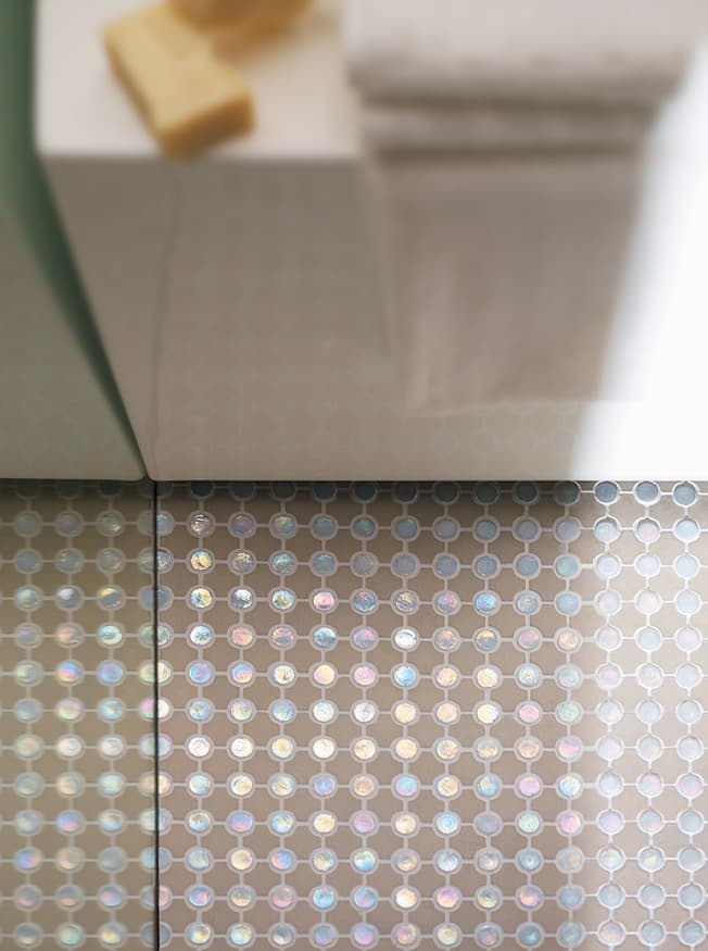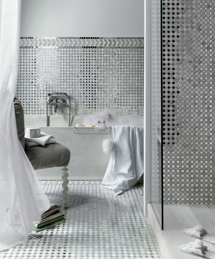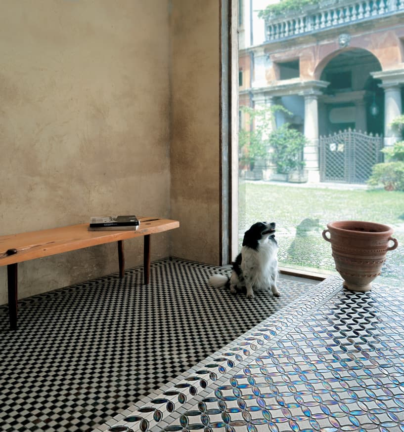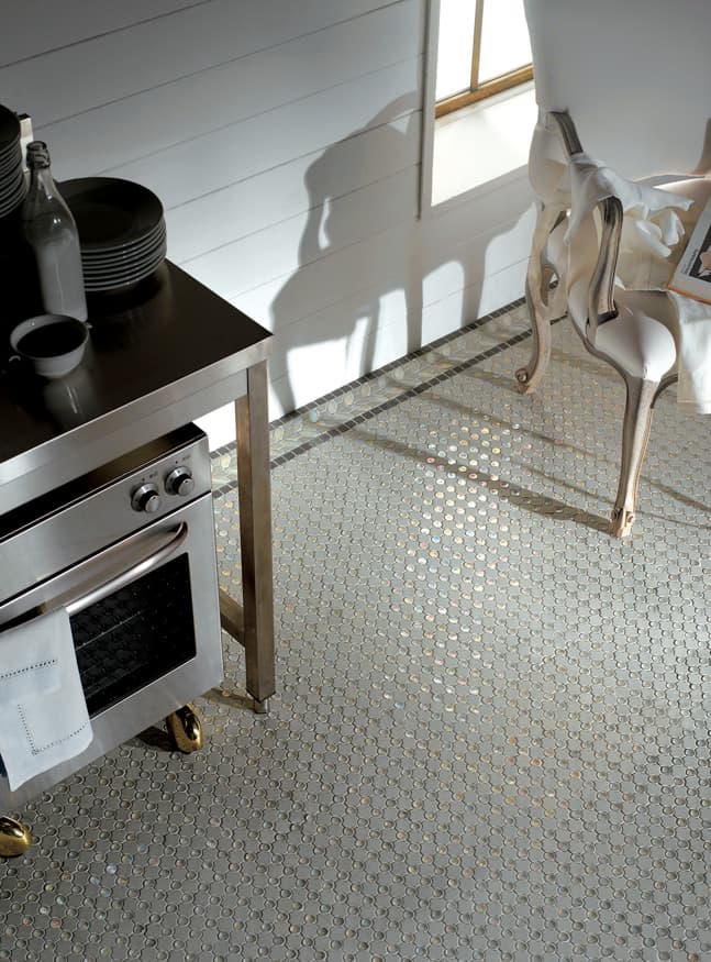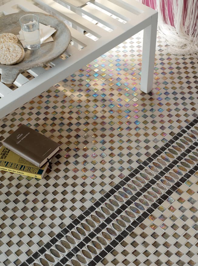 Superfici ricercate e distintive, che donano luce agli ambienti. Marmi selezionati, pietre, madreperla, legno e speciali vetri in una perfetta armonia degli opposti, contrasti che combaciano e si completano a vicenda in eleganti geometrie.