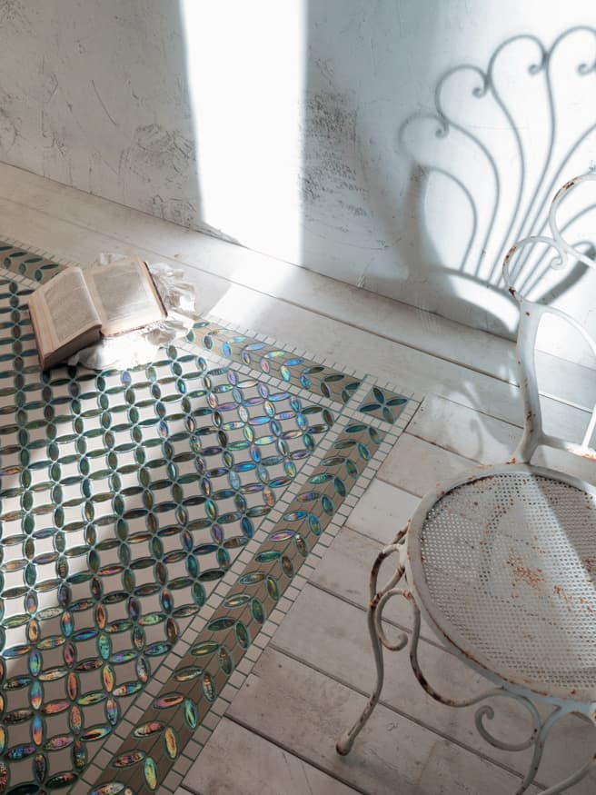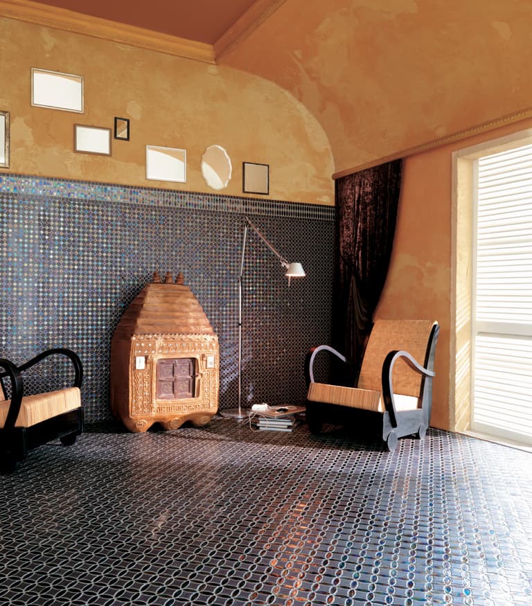 Onice, madreperla, lastre di marmi pregiati, con decori e intarsi a contrasto realizzati in mosaico artistico. Le tessere sono scelte e posate pezzo dopo pezzo dai nostri maestri mosaicisti negli atelier ravennati a formare straordinari disegni e decori. Le linee curve, le nuance dei colori e ogni minimo dettaglio dei pattern vengo rispettati ed evidenziati. Uno spettacolo di cromie e materie, per superfici che esprimono una bellezza senza tempo.