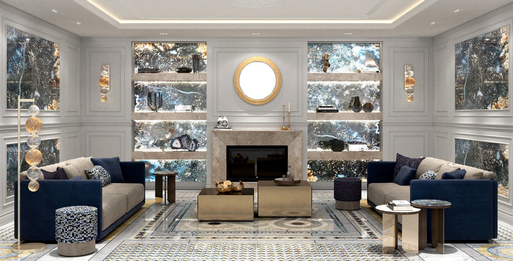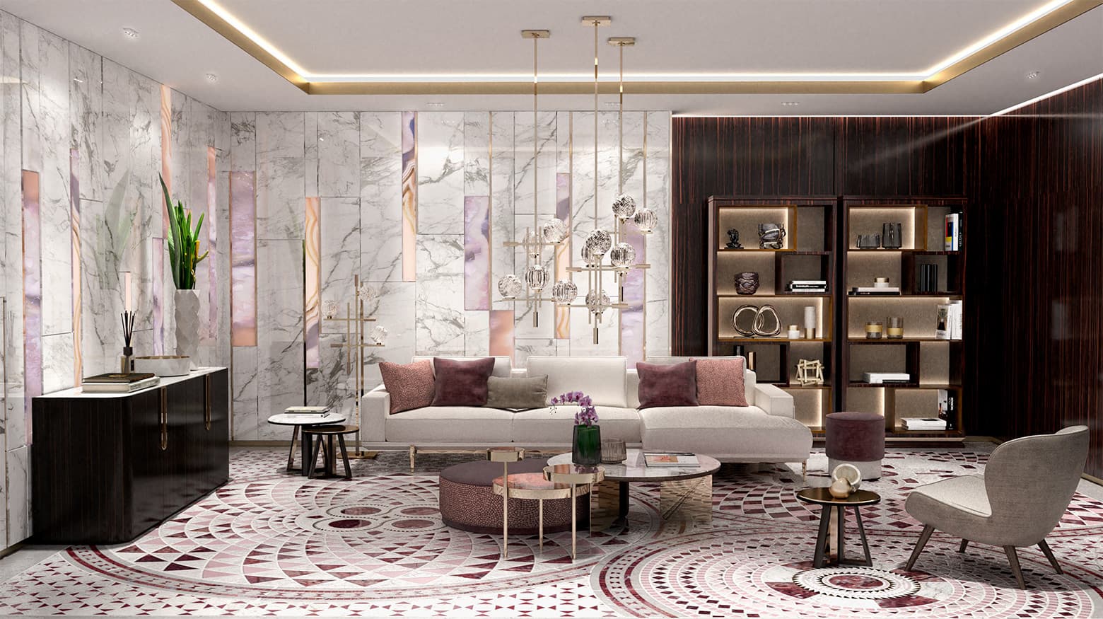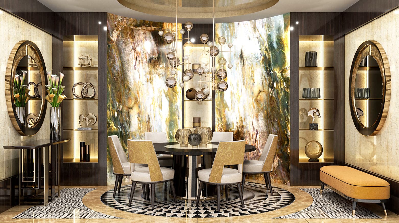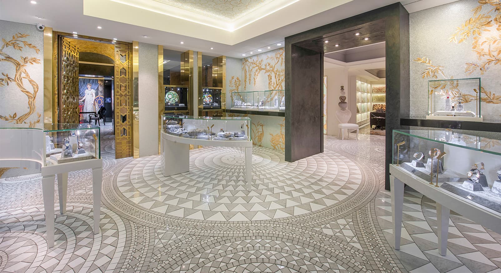 Rotazioni e simmetrie, secondo un ordine perfettamente matematico. Uno studio approfondito del mosaico cosmatesco ha permesso a SICIS di interpretare quest’arte in maniera evolutiva e di creare la ‘Collezione Cosmati’, in marmi, vetri, oro e altri materiali, diventata negli anni una delle più apprezzate da architetti e designer.