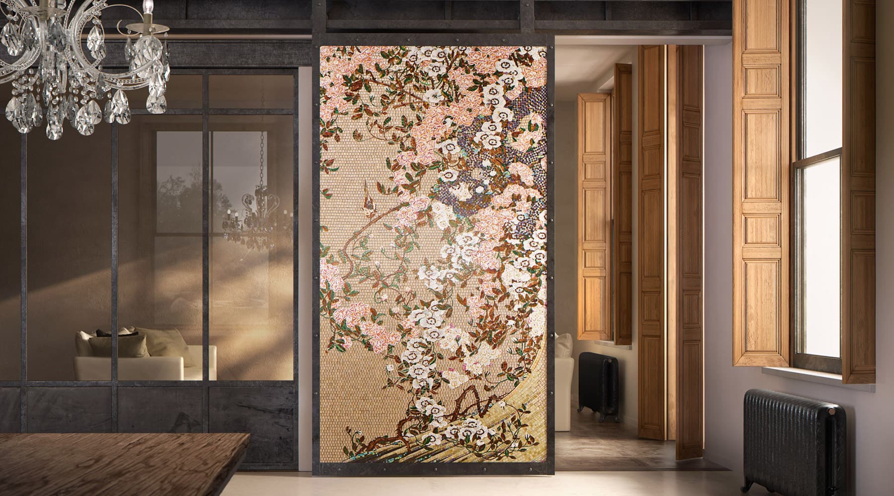 Partendo dalla sua struttura, a scelta fra sistema a battente o a bilico verticale, possiamo rivestire qualunque porta con le nostre iconiche realizzazioni in mosaico artistico, per dare eleganza e ricercatezza, ma anche carattere ad ogni ambiente.