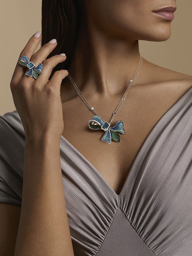 Un mondo caleidoscopico, fatto di ricerca, maestria e raffinata eleganza. Le minuscole tessere dalle forme perfette, incastonate con assoluta maestria, abbracciano pietre preziose in una danza di luce magica e irripetibile. Gioielli dal design eclettico e dalla particolare tridimensionalità tattica. Un sogno che si fa realtà quello di portare l’arte del micromosaico verso un nuovo rinascimento. Una storia d'amore e di passione, per il bello eterno.