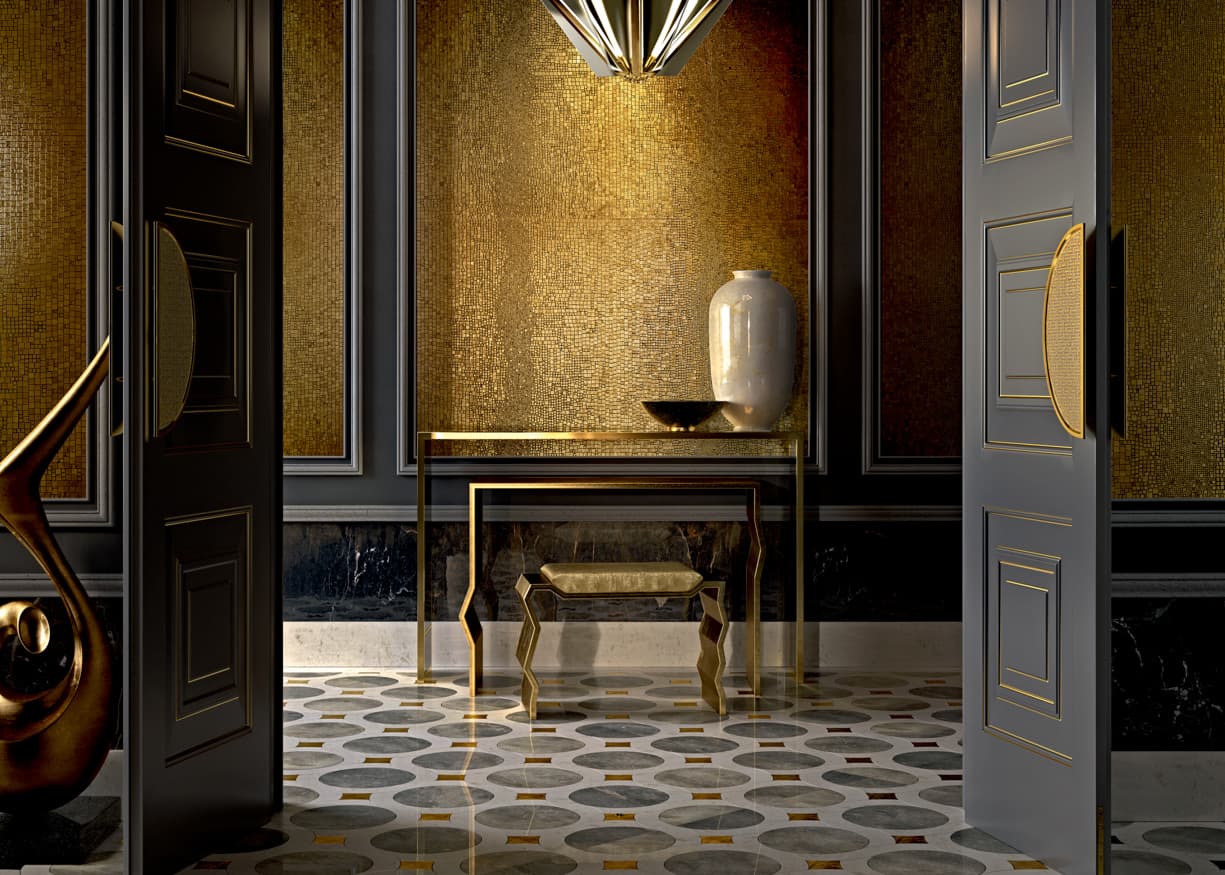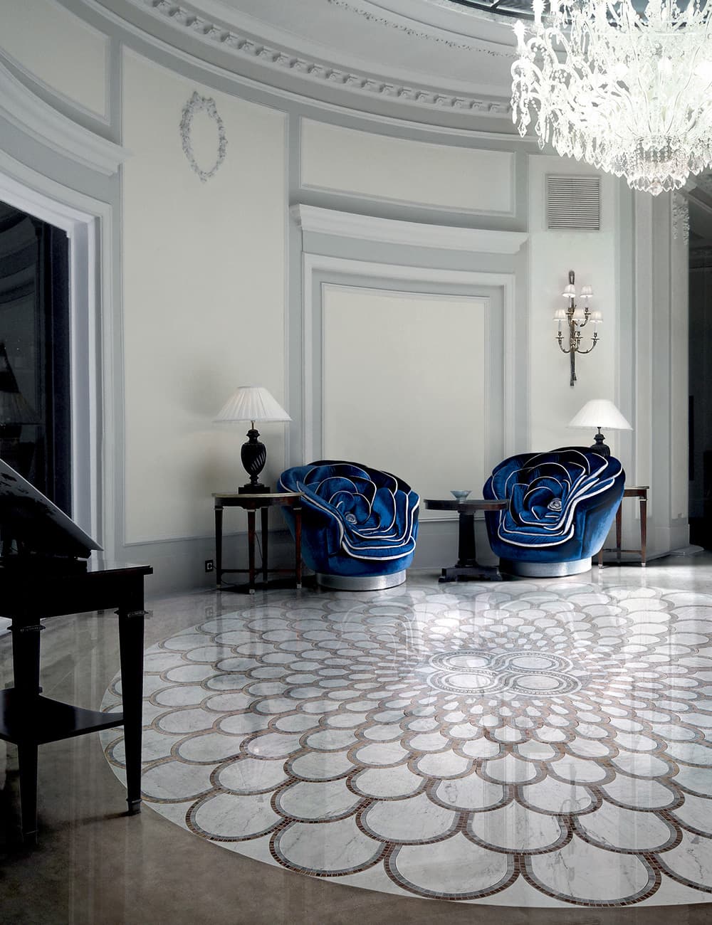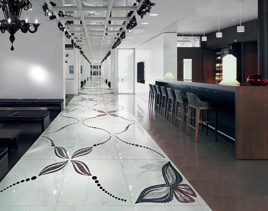 Pavimenti realizzati con preziosi mosaici in marmo e pietre ricercate abbelliscono dimore da sogno e lussuosi hotel in tutto il mondo.