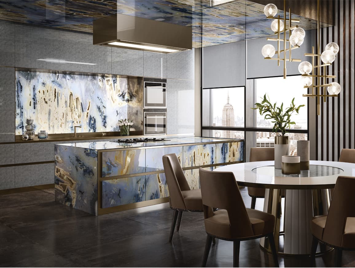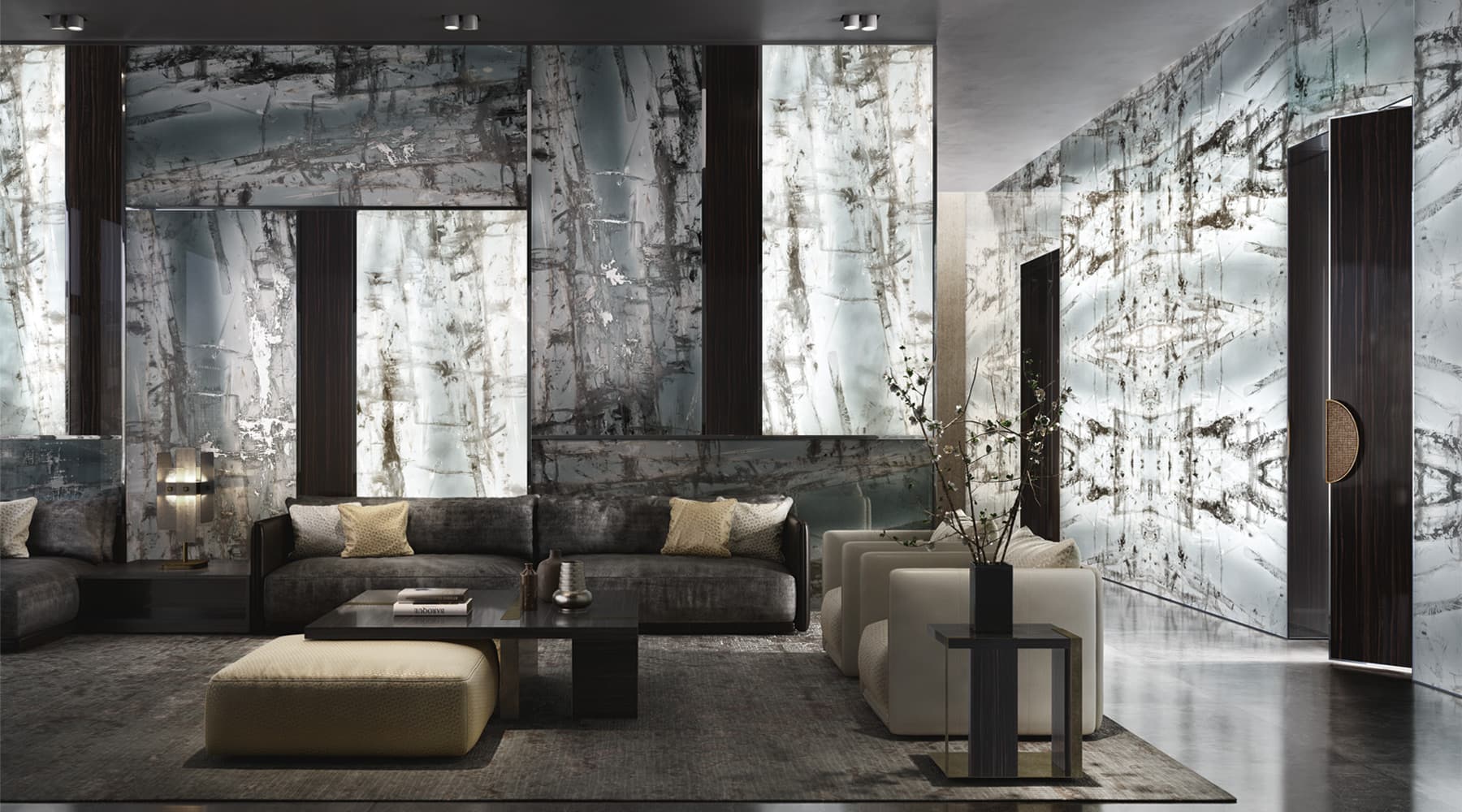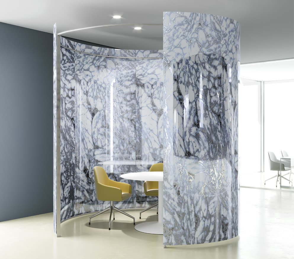 Sono lastre di vetro e polimeri, risultato perfetto di una produzione industriale mixata sapientemente a processi tradizionali e alla perizia artigianale. Un rivestimento innovativo, elegante e versatile, che si presta ad ogni necessità architettonica.