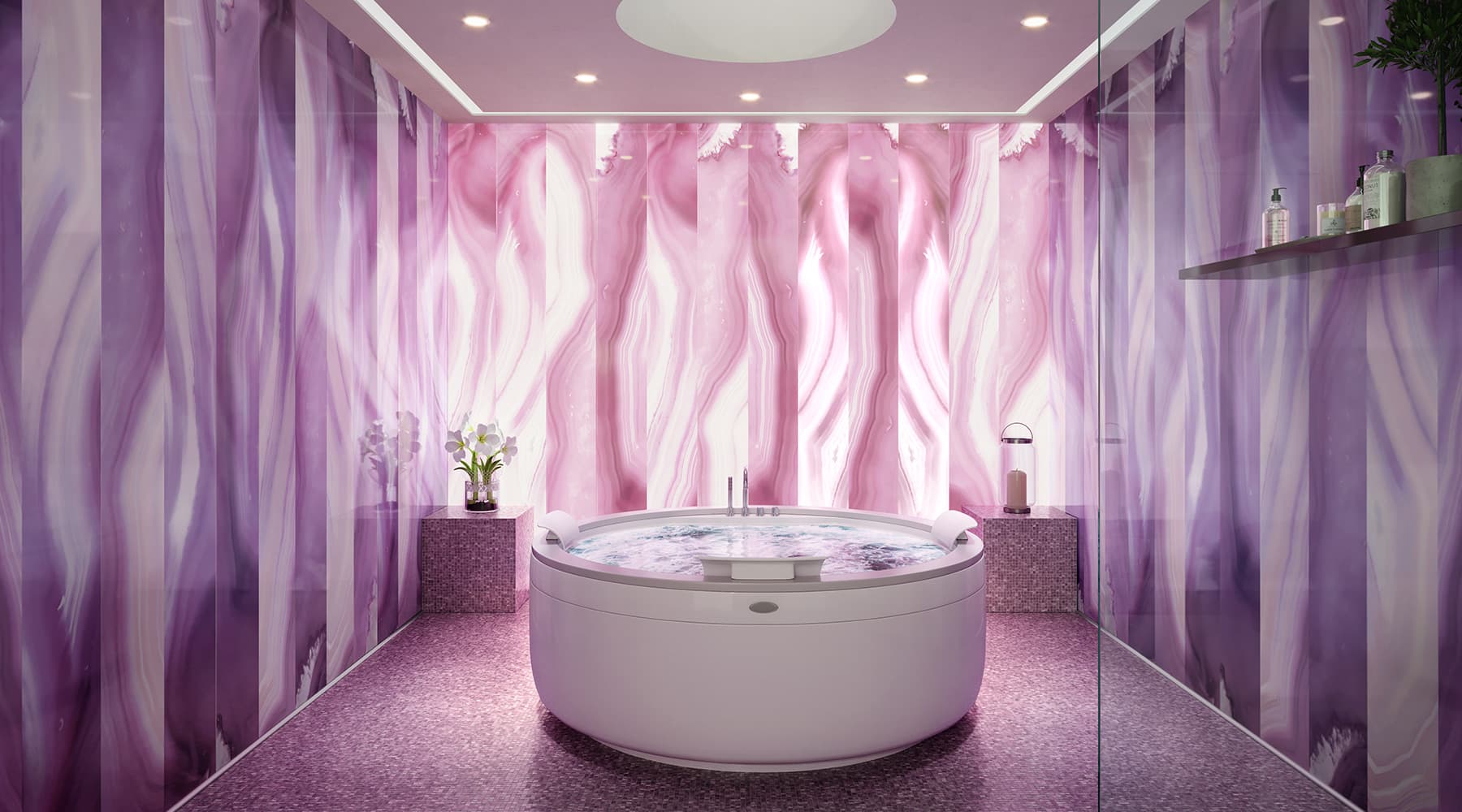 Permette di rivestire in interno ed esterno ampie superfici, fino anche a top di mobili. Sono lastre di vetro, materia pura, con una speciale formula di polimeri e metalli all’interno. Oltre ad avere un espetto estetico accattivante e offrire la possibilità di pattern personalizzati, le lastre sono tagliate, angolate e posate facilmente, come un rivestimento normale. Vetrite può essere retroilluminata, e possiamo ottenere lastre arrotondate secondo le necessità del progetto, bifacciale o meno.