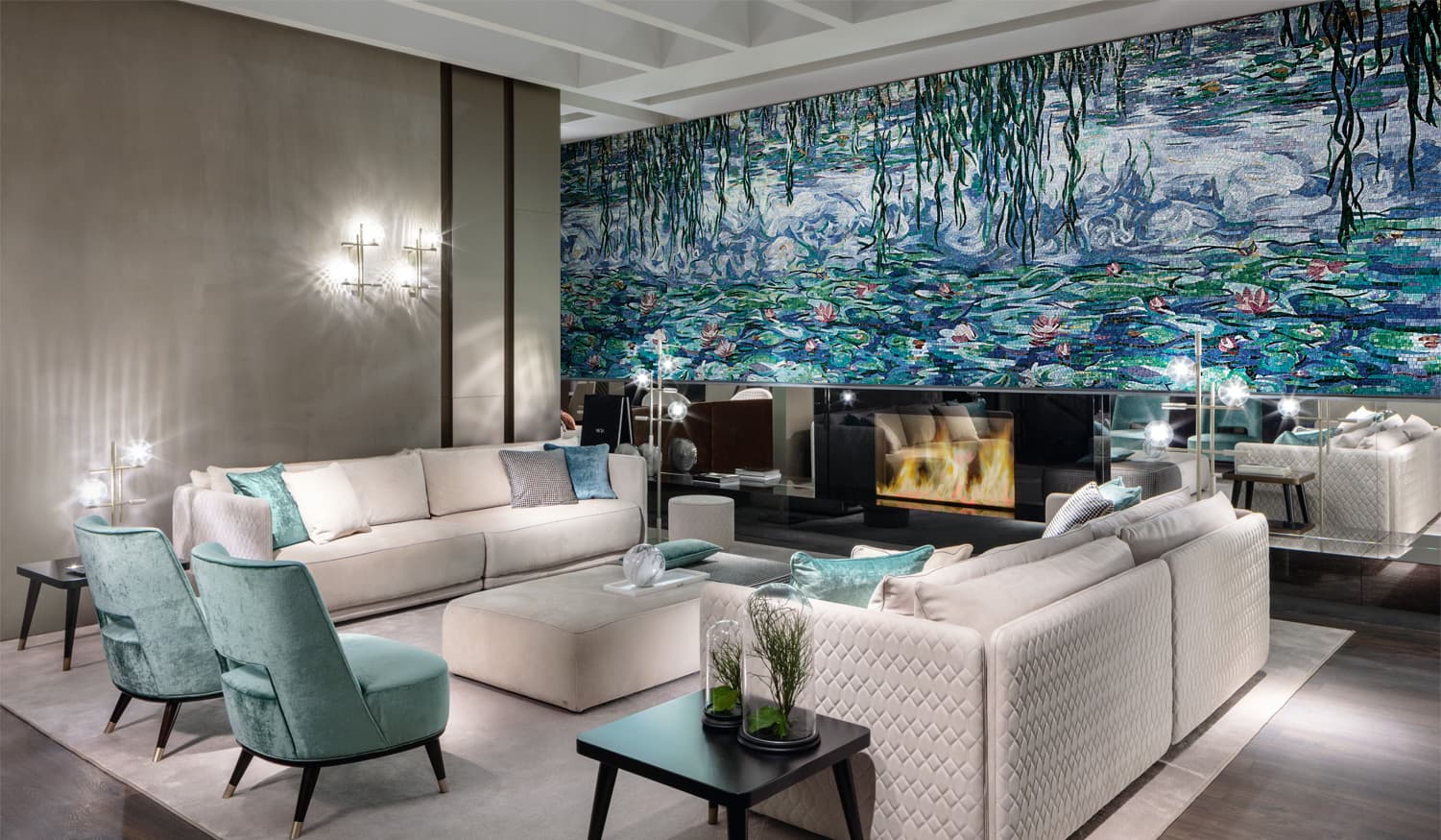 Lavori affascinanti, sempre unici, qualitativamente eccellenti. Luce, colori, speciali accostamenti, figure sinuose, foglie e fiori esotici enfatizzati dalla tecnica, elementi divertenti e altri solo puro rigore. ll mosaico artistico esce dagli schemi e diventa un linguaggio nuovo e universale, quello della tradizione insieme all’arte e alla forza della creatività. Si enfatizza la bellezza, come in una galleria, dove il pubblico, la critica, vengono rapiti dalla completezza del messaggio